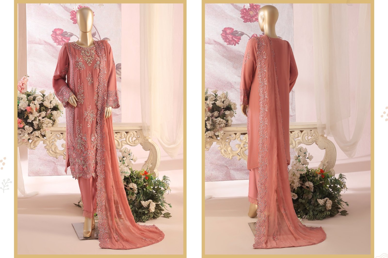 Ideal for Eid celebrations, weddings, festive gatherings, and evening events, this outfit combines comfort with high-end design. Since it is unstitched, it allows you to tailor the outfit according to your preferred style and fit.