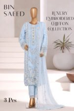 Step into timeless elegance with the Azure Eid Ensembles FEB 2026 Collection, crafted for women who appreciate luxury and sophistication. This stunning chiffon embroidered 3-piece suit features beautifully detailed embroidery across the shirt with delicate embellishments that add a refined and festive touch.